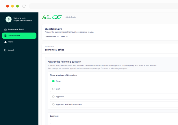 Register, assess, and achieve ESG excellence with our AI-driven platform.